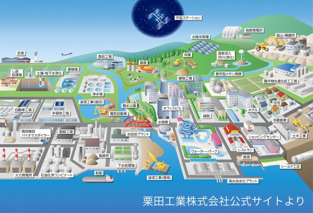 クリタグループのビジネスフィールドは、日常の生活から工場でのモノづくり、社会インフラの下支え、さらには宇宙インフラの持続的な構築に至るまで、社会と産業に密接、かつ幅広く関わっております。